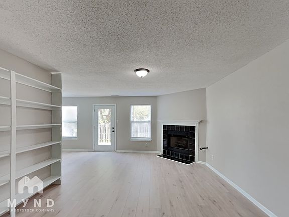 Cozy decorative fireplaceModern kitchenStainless steel appliancesPrivate fenced backyard
