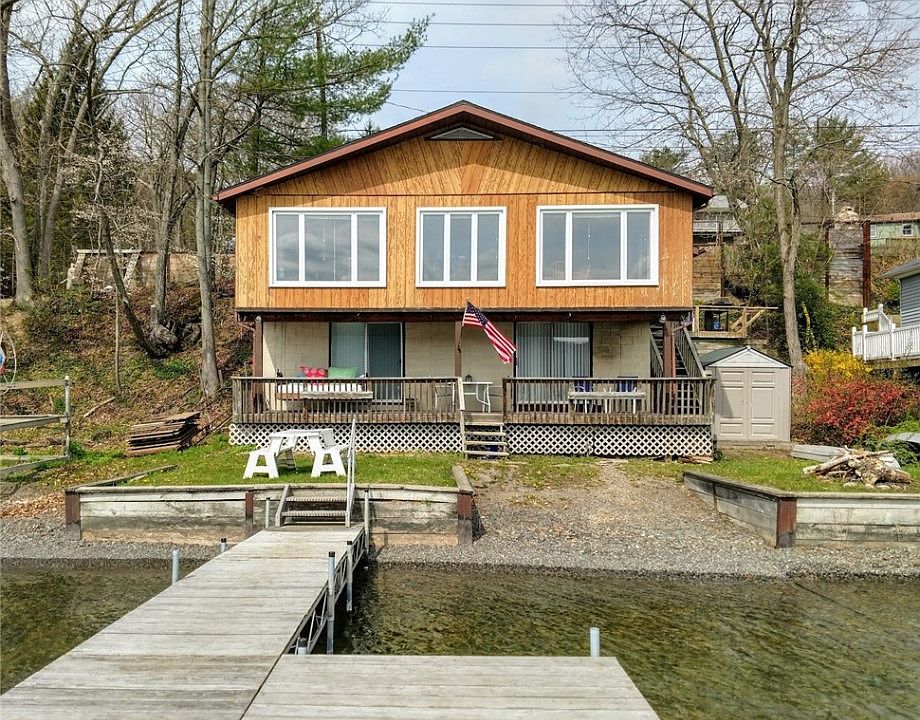 RELAXING KEUKA LAKE ALL SEASON RETREAT to enjoy the morning sunrise! Renovated throughout with spacious open kitchen, dining and living area on main level with 2 bedrooms and bath. Lower level family room and 3rd bedroom - walk out to covered porch and 49' lakefront with natural beach and grassy area for bonfires and play! New metal stairway with inclinator chair lift from parking area to cottage! Existing holding tank will be updated for larger capacity and Keuka Watershed approval. Property must be connected to public water after transfer! LOTS OF PARKING! Be ready to enjoy Keuka 2022! No negotiations will take place until Tuesday May 10 at 12:00 noon. Please allow Seller 24 hours to respond - thank you