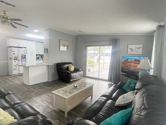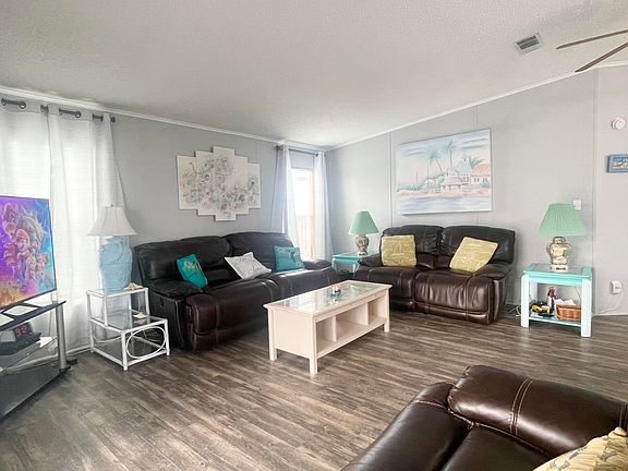 Buyer must be 55 or older and occupy the home. This is a beautiful, well-kept, quiet 55 + community in the heart of Panama City Beach. This community provides easy access to all Panama City Beach has to offer, but tucked away off the beaten path. The community features a heated/cool pool, clubhouse and a private street (with no through traffic)! Golf cart friendly and fun friendly! The HOA covers water, trash, sewer, basic cable, irrigation and the pool and clubhouse usage! The home comes furnished with living room, dining and bedroom furnishing. Fresh paint throughout. New floors. Brand new kitchen and bathrooms! Cabinets feature soft close doors, lazy Suzanne, pull out shelves, built in trash and contemporary finishes! All appliances stay including the washer and dryer! The home features a large, screened in porch facing the street with sliding glass doors to the main living space. Open concept home with living room, kitchen and dining space in the front of the home and two bedrooms and two bathrooms at the back of the home. There are (2) sheds in the backyard, one with electricity for a workshop. There are motion sensor lights all around and two ramps to access the front and side doors!