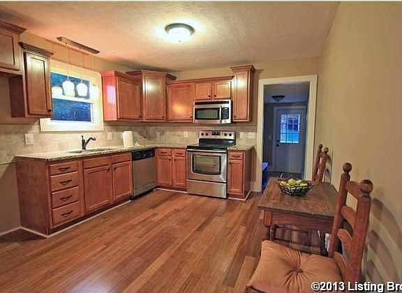 You won't believe your eyes! This once dreary 3 bedroom 1 bath stone ranch in lovely Camp Taylor has been completely renovated. A solid Mahogany door greets you and upon entry you'll discover beautiful new hardwood flooring throughout the home. The kitchen boasts new Maple cabinetry, stainless steel appliances and GRANITE counter tops. All the windows and gutters have been replaced and the fresh landscaping and a revamped front porch provide great curb appeal! 1673 Christian Street is conveniently located near Audubon, The Louisville Zoo and I-264. Seller is offering a First American Home Warranty. Call today!