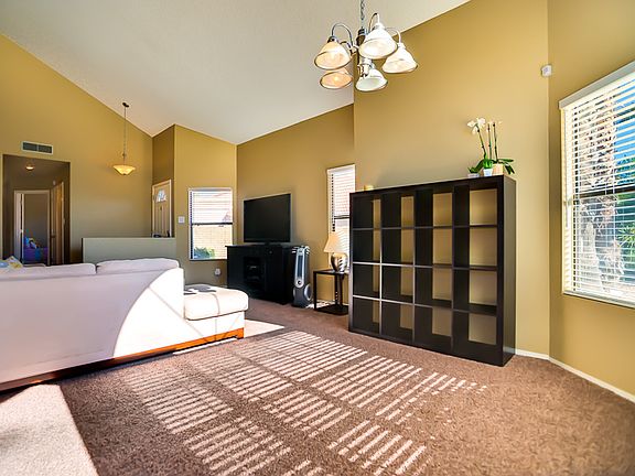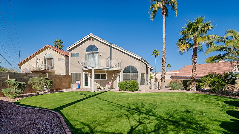 You are going to love this adorable cul-de-sac, 3 bedroom, 2 bath home with a huge, grassy backyard & putting green! Nestled in The Springs on a private pie-shaped lot this home features a neutral palette thruout. Large living & family rooms, updated kitchen w/granite counters, & dining space. 2 bedrooms downstairs with second level airy loft perfect for a dressing room, nursery, den or sitting room opening to the master bedroom with vaulted ceilings & a step out balcony. Well maintained with a new water heater (’13), new downstairs 14 SEER AC (’14), & a home security/temp control system. Around the corner from neighborhood amenities incl pool, tennis & basketball courts, lakeside paths, community center. Across from Bologna Elementary School, Willis Junior High, and San Tan Park & partially backs to dead-end, low traffic road - this one will not last!