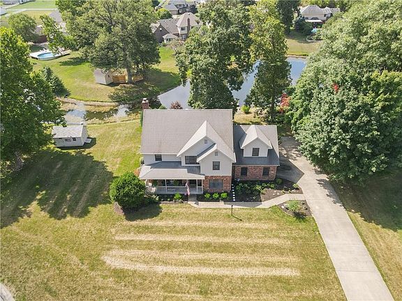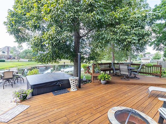 Custom 4 bedroom home w/pond views located on cal-de-sac w/easy access to I-70. Covered front porch opens into 2 story entry flanked by home office and formal dining room. Open views from the updated kitchen w/granite counter tops/tiled backsplash, stainless appliances & laminate floors into breakfast nook & Great room w/gas fireplace. You will enjoy your morning coffee & evening beverages in this sun room overlooking the pond & backyard. Updated Owner's suite includes tiled walk in shower, sep. jetted tub, his and her closets & vanities. 3 spacious guest bedrooms plus bonus room w/built in storage located on second level. Outdoor fun continues from the multilevel deck to paver patio w/hot tub. Beautiful landscaping highlights this home.