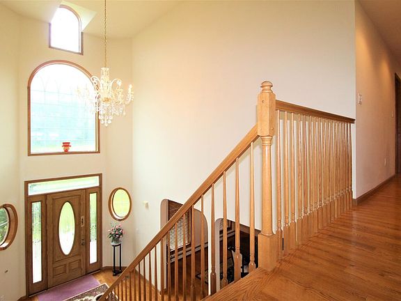 Castle on the Hill with dramatic style! Impressive grand foyer opens to a spacious home with open floor plan that is destined for entertaining. There is room for everyone and every activity. The architecture in this home will amaze you. Keep looking up at the interesting ceilings. Incredible kitchen is stunning and highly functional featuring professional grade appliances. Gorgeous first floor master suite has amazing closet space and a private bath with double vanities. Four more suites with private baths and abundant closet space are on the second floor. The lower level with french doors to the rear yard has a gorgeous bar,game room, pool table, excercise area and full bath with a steam shower. Beautiful views from the decks and dozens of huge windows of your 3.35 acres.
