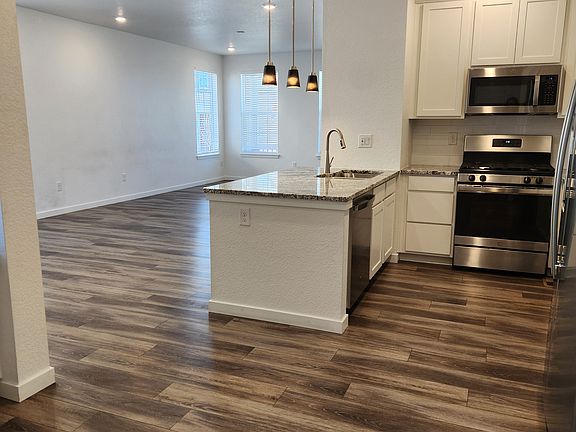 Paired home located in the Compass neighborhood is ready to be occupied. This home features 2 bedrooms, 2 1/2 bathrooms, and an unfinished basement for storage. Also included are granite counter tops, stainless steel appliances, Solar panels and a 2 car garage. Landlord pays for trash. Tenant is responsible for all utilities and yard maintenance. Tenant(s) responsible for all utilities including electricity and water. Tenant(s) must agree to lawn maintenance and snow removal of sidewalks and walk-ways. HOA will only remove snow from alley when it reaches/meets required accumulation. No smoking indoors. Small pets are allowed with a non refundable fee($250/per pet). Tenant(s) will need to pay 1st month rent($2695) and deposit($2695) upon signing contract.