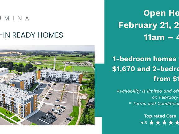 - Special offer! Open House on February 21, 2026 | 11am 4pm - 1-bedroom homes from $1,670 and 2-bedrooms from $1,999 Availability is limited and offer valid on February 21 only. * Terms and Conditions Apply.