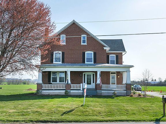 Amazing find! All brick farmhouse style home on 1.8 acres of agriculture zoned land near Manheim Auto Auction. Beautiful wrap around front porch! Interior has all natural Chestnut woodwork and beautifully finished hardwood floors. Spacious old world living room and formal dining room. Beautifully Updated custom cherry kitchen with center island. Stainless steel appliances. Convenient walk in pantry. Huge walk up attic ready for transformation into a master bedroom suite! CONTRACTORS: With 4 car garage including one for RV storage and plenty of additional parking, this is perfect for you!