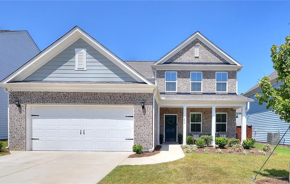Built in 2023, this home has it all and all you will need to do is UNPACK! Located in the wonderful Mill Creek School Cluster in Pinebrook at Hamilton Mill, a swim/tennis/playground/clubhouse community close to I-85, Hwy 124, schools, shopping and more! This Open Concept Craftsman home features a covered front porch with a wonderful view of an undisturbed area. Open foyer to office or flex room with french doors, open white kitchen to the large family room. Kitchen features beautiful white cabinets, very large island with sink, so much work space and all with white quartz and a stunning white upgraded tile backsplash. Gas range with five burners, microwave, dishwasher, beautiful upgraded lighting and sustainable wood flooring! Huge eat in area could also be a formal dining room. Kitchen door leads to level backyard. Master on the main level with trey ceiling and large bathroom with his and her vanities and oversized tile shower. Upstairs features a very large loft family room, large private bedroom and private bath and two additional large bedrooms and hall bath with two vanities. There is also a powder room on the main level. Ceiling fans in all bedrooms, lots of natural light, upgraded light fixtures in bathrooms and upgraded mirrors. This home is immaculate, yard is established, two-inch blinds throughout. So many flexible living spaces, great neighborhood and great schools! Join the Hamilton Mill area and enjoy all the area has to offer. You won't be disappointed with this home!