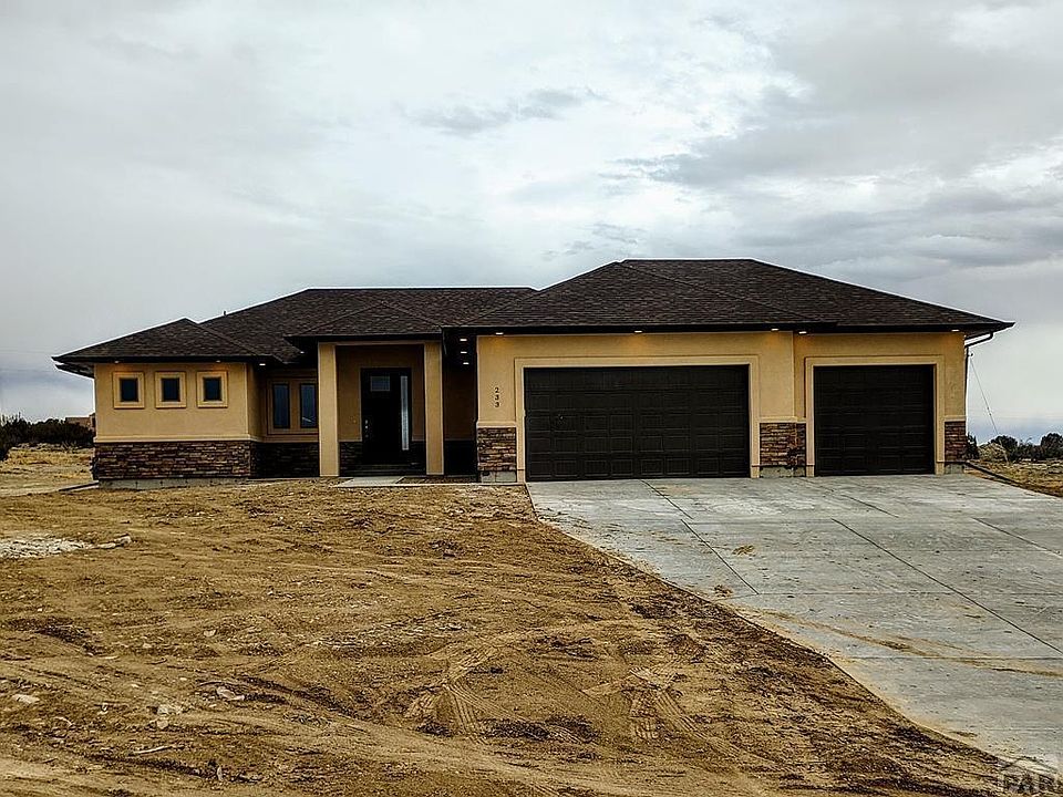 Northern Pueblo West New construction! Estimated completion End of August 2021. Buy this dream home today and you will have the option to pick all your own colors and flooring to this very beautiful single-story 3 bed 2 bath home, a timeless masterpiece with soaring vaulted ceilings. Truly unique modern sophistication & contemporary living on 1.07 acre with 3 car attached garage. Kitchen includes recessed lighting, granite counter tops, tile flooring and pantry. Master bath includes two separate sinks and walk-in closet. Covered back porch will allow you to enjoy your outdoor time in comfort and just minutes from beautiful lake Pueblo. Can't beat being the first person to live in the home! Interior pics are of another similar home built in Pueblo West to reference how this home will look inside and out. Kitchen will have a built in corner Pantry that these pics do not display.