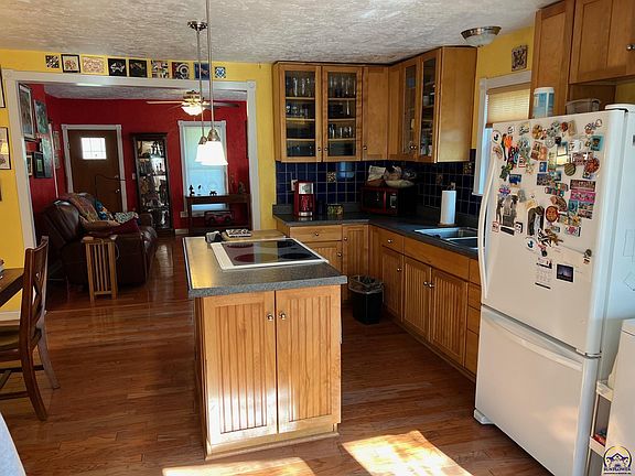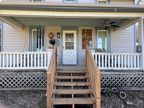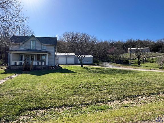 Very cool turn of the century home with multiple studios set up for art and sculpture work. Set on the road to KU's Rimrock Farm (cross country team) is this fun loving space that could be your destination home. Happy colors in the home with a front porch to relax in the shaded evenings overlooking farm ground out front. Garage/barn is a split building behind the house 24x50 then take a drive halfway up the hill to your 50x30 art studio with an amazing view. There is a lot to love here which is why the owner has enjoyed it for decades.
