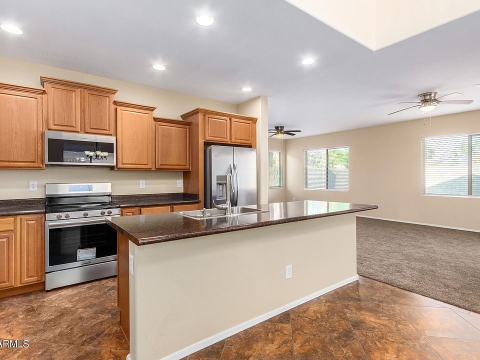 Move in Ready, 4 Bedroom/ 3 Bathroom plus a Den, there is a Bedroom with a full bathroom in the main floor. Open Floor plan, Kitchen Island with NEW STAINLESS-STEEL APPLIANCES, walk in pantry. The Kitchen oversees the Living Room and Den, New Carpet, Master Suite with dual sink, separate shower and Bathtub, walk in closet, washer & dryer included, lots of storage space for a growing family.