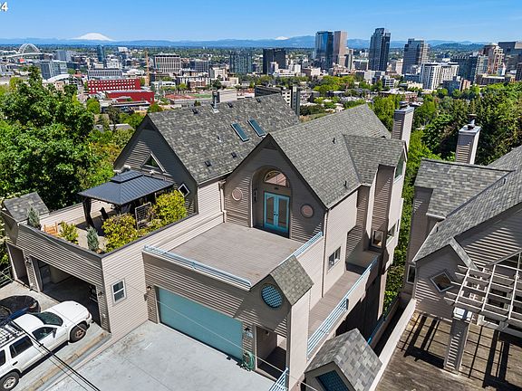 First time ever on the market! Perched 65 feet high, this three-story property offers stunning views of the city skyline, Mt. St. Helens, Mt. Adams, the Fremont Bridge, and Providence Park. This beautiful home, boasts 4 bedrooms, two with balconies and one with a massive 20 x 20 deck.Inside, enjoy new fresh carpet and laminate flooring, along with a fresh coat of paint throughout. The second-floor living room features cozy window seats and opens onto a spacious deck, perfect for enjoying morning coffee or evening drinks.Entertaining is a breeze with a large dining room and a kitchen with an extra eating area. Experience luxury living with nature's best views in this urban retreat. But that's not all - the seller had the basement storage area transformed into a professional darkroom for her photography passion. Fully plumbed for developing film right in your own home! Although high off the ground, you should feel good knowing this home has had the foundation/piers strengthened and checked out by contractors & structural engineer prior to listing. This place is solid with all the heavy lifting being completed for your peace of mind. Engineering reports, contractor reports & seismic reports available. HES Score= 5/10 (https://us.greenbuildingregistry.com/green-homes/OR10227498) [Home Energy Score = 5. HES Report at https://rpt.greenbuildingregistry.com/hes/OR10227498]