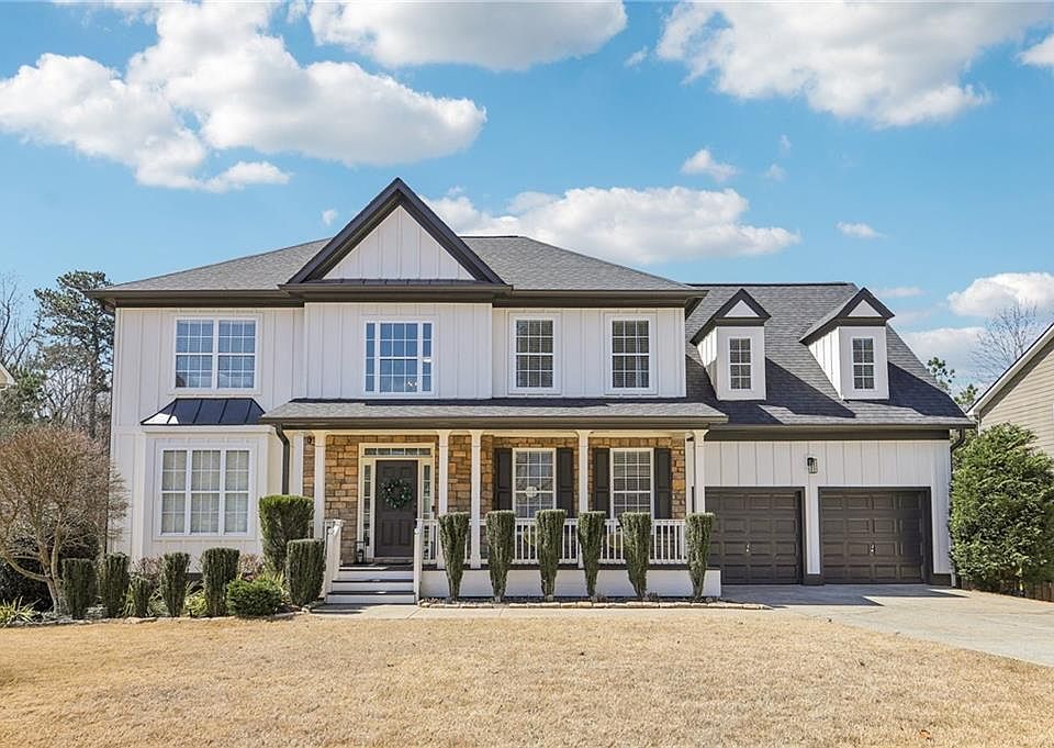 Gorgeous farmhouse style home with beautiful upgrades throughout! Step inside to gorgeous hardwood floors throughout and LVP in the basement for easy to maintain floors. Formal dining room seats 12. Soaring 2 story ceiling with lots of natural light and pool views in the living room with an open concept kitchen featuring breakfast bar, granite counters, tile backsplash, and on-trend painted cabinets. First floor guest bed/bath. 4 bedrooms upstairs including the spacious primary suite. Don't miss the full finished basement with a state of the art movie theater (tucked away behind the secret bookcase door!), entertainment space, modern home gym, full bath, and bedroom. Dreamy outdoor spaces include an in-ground heated saltwater pool, beach fire pit, and mature landscaping including palm trees, all on a large private fenced lot. Roof and HVAC replaced 3 years ago, along with the deck with underdecking system. Centrally located with easy access to Kennesaw Mountain Park, shopping, dining, and award-winning schools! Enjoy a vacation every day this spring!
