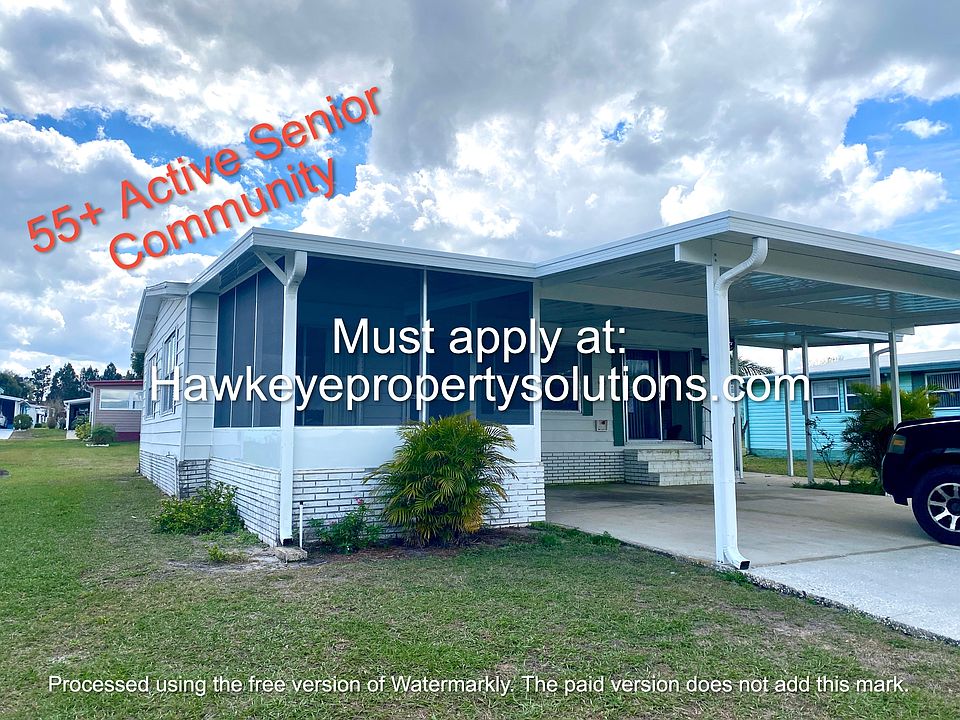 Coming available soon! 55+ Community - Lakeview 2 bedroom 1 bath home with screened patio along with a storage/ laundry room. Located directly across from lake that boasts a walking path and close vicinity to club house with pool and shuffleboard. NO lot fees.