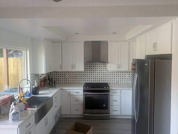 Recently remodeled kitchen cabinets, new water heater, Vinyl floors, two car garage, backyard, and HOA pool access.