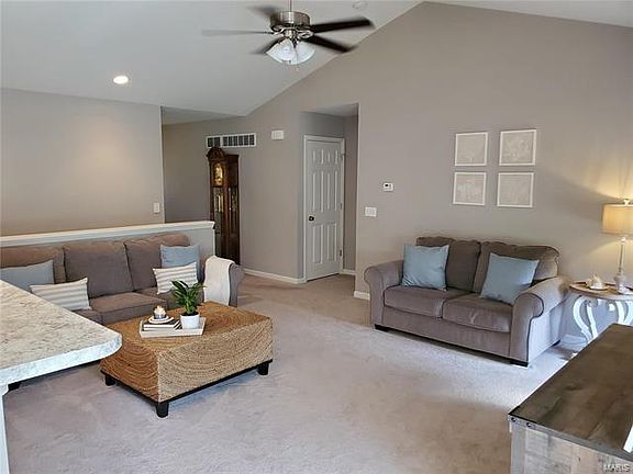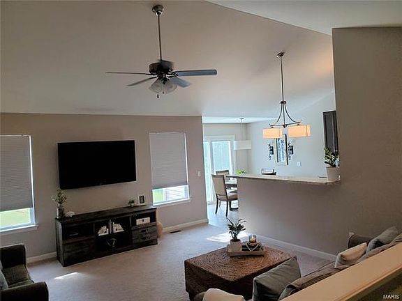 Gorgeous 3 year old, Camden model 3 bedroom, 2 bath Ranch home shows like a display and is ready for a new owner! Desired open floor plan offers a spacious Great Room w/vaulted ceiling expanding into the kitchen and breakfast room. Open kitchen has 42 cabinets, dual sinks, black appliances, custom tile back-splash and counter overhang for additional seating. The large master bedroom suite offers a private bath with dual sinks, shower with glass doors and walk in closet. Off the entry are 2 spacious bedrooms which share a full guest bath. This home offers a full basement with rough-in plumbing, perfect for future living space. Additional features and upgrades include main floor laundry, ceiling fans, entry foyer with hand scraped hardwood flooring, sliding glass door with built in blinds, 12x15 concrete patio, brick front/vinyl exterior, fully sodded yard w/newer landscaping, 2 car garage, motion security lighting, community pool and so much more!