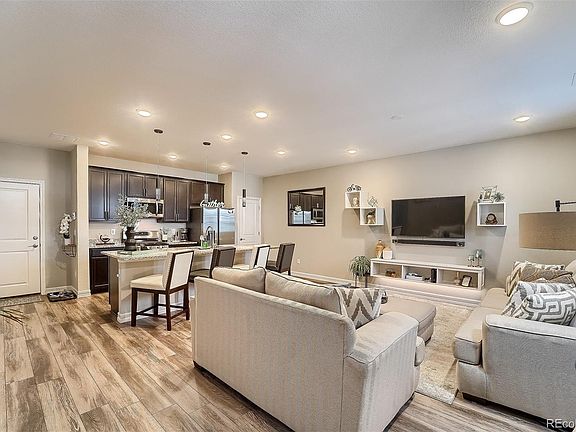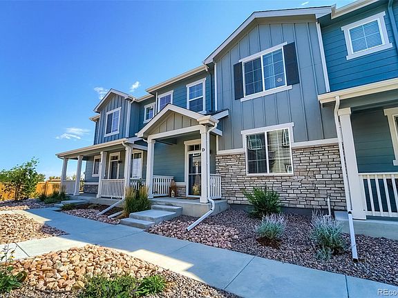 ASSUMABLE LOAN 2.5% INTEREST RATE. This nearly new Townhome is great for easy Colorado living. The modern 2-story greets guests with a charming front porch with ample space for seating. Upon entry, you’ll notice the 9-foot ceilings and an open layout. The beautiful kitchen boasts a massive kitchen island. It comes fully equipped with stainless steel appliances. Easy to maintain Luxury vinyl plank flooring and upgraded lighting throughout the main level. The main floor has an upgraded powder room and a 2