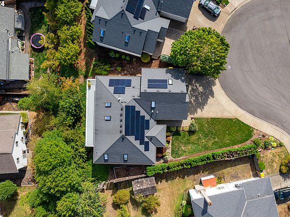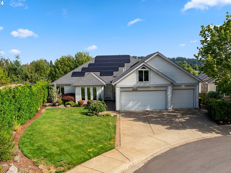 Welcome to your dream home in the highly sought-after Cooper Mountain neighborhood, perfectly situated in a prime cul-de-sac location with unparalleled views. This stunning home lives like a single-level offering the ultimate convenience with all bedrooms, bathrooms, a beautifully updated kitchen, and spacious living areas on the main floor, plus a versatile bonus room with storage upstairs. You'll be captivated by the breathtaking panoramic views of the mountains, valleys, trees, and cityscape—perfect for enjoying both serene sunrises and vibrant sunsets from the comfort of your own home. One of the standout features of this property is the fully-owned solar panel system, powering the home and leaving the current owners with just a nominal $30 monthly connection fee. With utility costs on the rise, this is an incredible opportunity for significant long-term savings of hundreds of dollars a month. The home is designed to maximize these stunning views, with large windows throughout that flood the space with natural light. The kitchen boasts elegant granite countertops, updated cabinetry, and a seamless flow to the outdoor deck, ideal for entertaining. Additional highlights include an oversized 3-car garage, central vacuum system, skylights, a well-appointed laundry room with a sink, built in surround sound and an EV charging outlet, catering to modern needs. This home is a rare find, offering luxury, efficiency, and a connection to nature that is truly unmatched. Don't miss your chance to own this exceptional property—schedule your private tour today!
