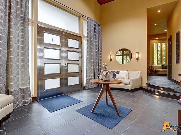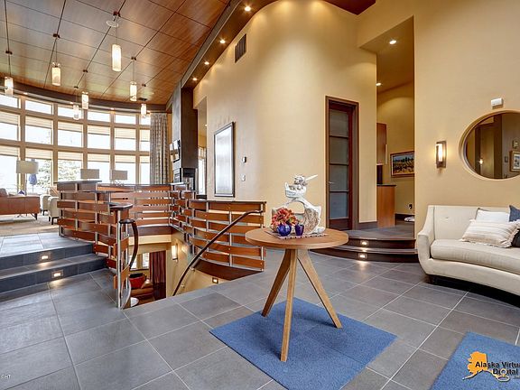 Stunning custom Prominence Pointe home in a secure gated community! Panoramic views from Mt. Redoubt to Downtown Anchorage. Property features over 2,000 sqf garage w/separate 1/2 bath & 14 ft RV door. Lg entertaining deck is spacious & perfectly tucked into the house! The home is made to entertain w/great flow & open main floor. Truly a chef's kitchen featuring black honed granite counters, Viking