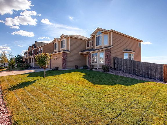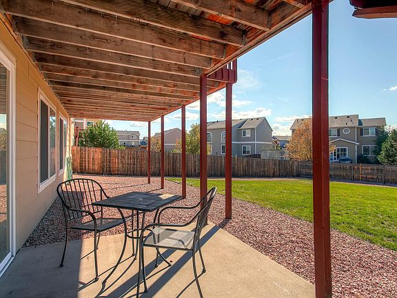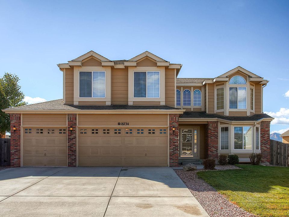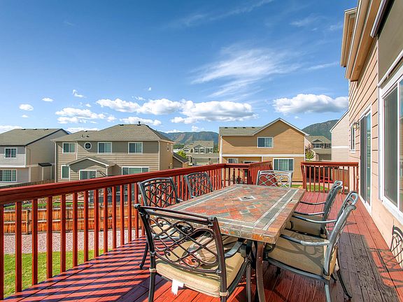 Fantastic 2-story home in the desirable D-38 School District. Tall ceilings greet you at the entry. Bright open floor plan, large family room w/fireplace and A/C. Spacious kitchen w/breakfast bar, double ovens, pantry, dinning & living room, 1/2 bath and laundry on main. Upstairs you will find a great master bedroom w/attach 5 pcs bath & walk in closet, 3 guest bedrooms and a guest bathroom. Finished walk out basement. New carpet and exterior paint. Close to Air Force Academy & easy access to I-25. Great location! Walk out deck w/mountain views in backyard. Electric Sun Shade for the large windows in family room, utility sink in laundry room, large 3 car garage w/garage service door, all appliances stay, professional landscaping in front & back and concrete patio. Plenty of storage throughout. Large back yard, sprinklers in front and rear, close to hiking trails, shopping and restaurants. Great location!