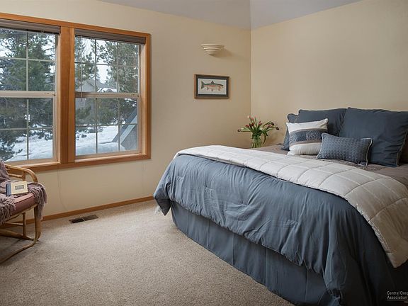 River Meadows Charmer! This cozy home is ready and waiting. A bike/walking path just across the street leads to the Deschutes river. 2 bedrooms downstairs and master suite upstairs. Large living area with beautiful vaulted wood ceiling. Attached double garage. Community features: Pool, walking/biking paths, tennis courts, boat marina, Kayak/Stand up paddle board docks and community clubhouse.