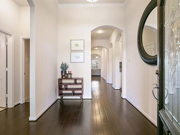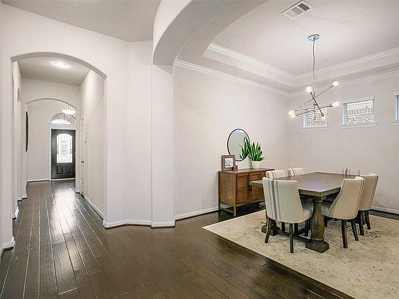 Your search is over! This gorgeous 4 bedroom/3 bath Ryland home is just waiting for you! The stylish home features engineered hard wood floors and neutral paint. No front neighbors, as you lookout to the park. Beautiful curb appeal, stone and stucco elevation. Formal dining room has tray ceiling, double crown molding and an upgraded chandelier. The gas log fireplace is the focal point in the family room. Gourmet island kitchen with granite counters, stainless steel appliances and pendant lights. The open floor plan makes it great for entertaining friends and family. Spacious master suite with tray ceiling and a bay window. Master bathroom has dual sinks, granite counters, garden tub and separate shower with a seat. Nice extended covered patio with an upgraded outdoor fan, speakers, wired for a TV, sprinkler system and gutters. Plenty of room for the kids and pets to run around and play. Call today to make this house your new home!