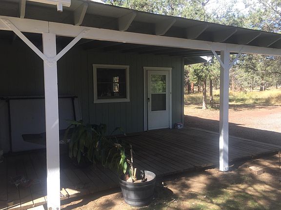 Cute guesthouse on 2 plus Acres in Sisters. 1/2 of large shop available for $200/month more. Wooded property, quiet and peaceful. Garden space available for next summer. Carport on one side, covered porch/deck on the other. Two storage closets outside. Live next door to owner. Fenced area for dog. Patio space outside slider. Tenant pays electric and garbage.