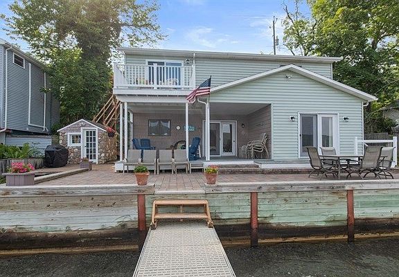 Turnkey, year-round living on Keuka Lake! This 3-bedroom, 3-bath home offers 55 feet of lakefront with a shale walk-in area and stunning views of Keuka’s waters and the Bluff. Upstairs features three bedrooms and two full baths, with a third full bath conveniently located on the main floor. The open-concept kitchen flows into the dining area, breakfast bar, and living room, while a second-story balcony off the bedroom provides the perfect spot to enjoy morning coffee. A stone outbuilding offers storage for beach gear, and a stackable washer/dryer is tucked into the main-floor bath.