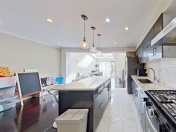 ONE OF A KIND. Curated Renovation. PARKING (FRONT) , WASHER DRYER, SPLIT AC, BACKYARD. Custom Storage. DUPLEX! Attic Storage + Tesla Charger! This home in Bensonhurst is bright. inviting, spacious. First floor features a large living room upon entry. Open dining and kitchen area with stainless steel appliances and custom island seating in the middle. just past that we have additional dining/sun room under the beautiful large skylights and a view to a fenced lengthy backyard. The entire space is flushed with natural light. upstairs, are 2 bedrooms that were orginally 3 BED (can be converted back to 3 if compelled). or Use as a 2 Bed, enjoy the ultra large room as a king size bedroom. videos on youtube/MY MOVE NY Real Estate or tiktok/insta mymovenyre view the 3D for amazing views of the skylight. Live in an actual house! Steps to bensonhursts hottest markets, and reliable subway and bus lines. message me about your situation. parking is additional cost, and an easy to access spot in front of the house. perfect for security. vouchers welcome, vales bienvenidos pets case by case. parking is additional and so worth it. easy access.