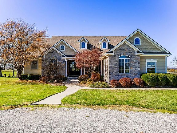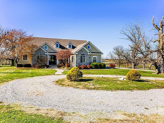 Positively stunning 1.5 story on FULL finished walk out basement on 20 pristine acres in Bourbon County. Expertly crafted with no detail missed. You'll love the gorgeous kitchen island perfectly placed as the focal point of the spacious great room. Perhaps equally lovely is the view out back; 20 gently rolling acres, perfect for horses with plenty of room to roam. Lovely pond and fully fenced wood property. Stunning limestone gate entry w/ the home itself keenly positioned far enough back from the road. Spacious 36x48 barn with stables. Don't miss the geo-thermal heating, massive sitting areas outside, the fabulous double wood entry doors, or the amazing finished basement. 6 roomy bedrooms (fitness room easily can be 6th BD) and 4.5 BAs make this well thought out home just perfect. Split BD design (1st floor primary) w/ in law suite upstairs (with semi-private entry). So close to everything- 20 minutes to downtown Lex or the horse park, 5 minutes to town, and minutes to I75/I64