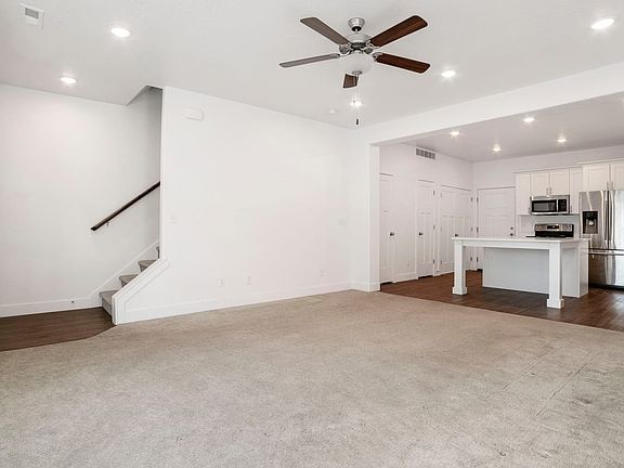 Quartz counter tops, double sink in master bath, 9' ceilings on the main floor, upgraded LED lighting, upgraded carpet pad, smart thermostat, smart door lock, washer & dryer connection upstairs, separate toilet in master bath, two closets in mater bedroom, across the street from a playground, a block away from the city library and elementary school. The fridge and water softner included.