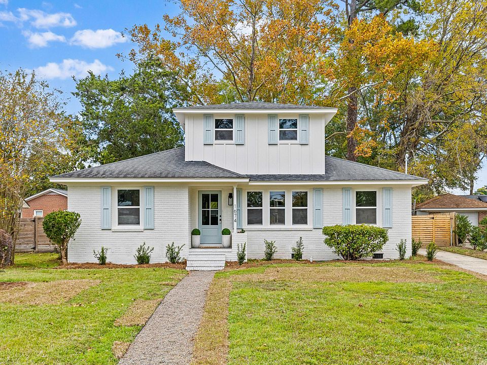 1674 Garden is a renovated 3 bedroom, 3 full bath home nestled in the Rotherwood Estates neighborhood of West Ashley. This highly desirable and well established subdivision is extremely walkable and in a prime location less than 10 mins from Downtown Charleston. You are also just steps to the West Ashley Greenway and a 2 minute drive to Whole Foods Market. This home has recently been totally reimagined and is completely move in ready. New windows. New electrical. New plumbing. Roof replaced in ~2016 and HVAC replaced in 2021. The brand new kitchen features a large pantry with built in wood shelving, quartz countertops, soft close cabinetry extending to the ceiling with dovetail drawers, stainless steel appliances, and a Zellige Perla tile backsplash.There are 2 bedrooms downstairs, one perfect for an office or as a guest suite with its own private full bath. There is also an additional full bath in the hallway downstairs. The formal dining room allows for a sizable dining room table and would be perfect for your family gathering this Christmas. Heading upstairs you will find the owner's suite complete with humongous walk-in closet with built in shelving and a luxurious en-suite bathroom with oversized tile shower with seating and a double vanity. Outside there is a fully fenced backyard with double gate and new sod. Schedule your tour today and be home for the holidays.