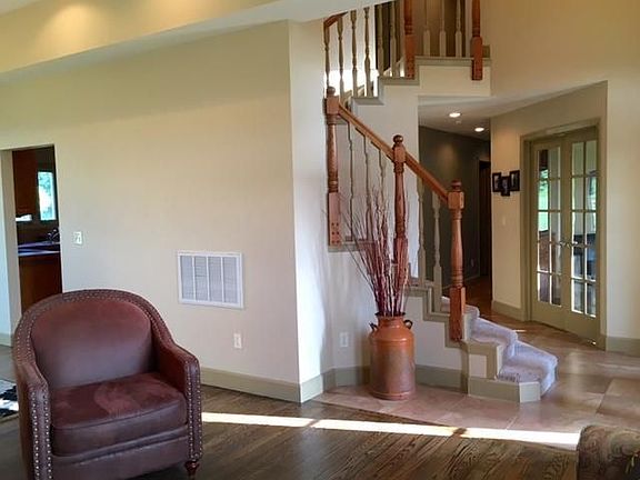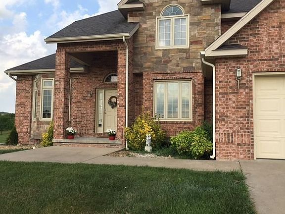 Impressive, all brick & stone home at 1674 Kaitlin Circle, Nixa. This custom built home on 5 acres, has 4 bedrooms, 2 1/2 bath, & a 3 car garage. There's a spacious formal dining room, office with built-in cabinet, & 2 living areas, all with freshly refinished hardwood floors. The eat-in kitchen has plenty of storage, a pantry cabinet, center island, & a built-in desk. The family room has a gas log fireplace plus there's a pellet stove that helps heat the whole house. Upstairs, you'll find plush new carpeting throughout. The master suite has a corner jetted tub, walk-in shower, double vanities, & a walk-in closet. Numerous windows provide lots of natural light, & scenic views of the countryside. Seller is providing a home warranty. Move in ready & waiting for a new family!