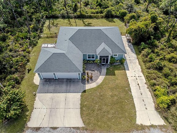 This private, custom-built residence is on a generous one-third acre lot, offering plenty of space and a serene setting. Inside, the open great-room floor plan creates a bright and airy atmosphere, with seamless flow between the living area, dining space and the spacious, well-appointed kitchen, ideal for everyday living and entertaining. The split-bedroom design enhances privacy, with the primary suite thoughtfully separated from the guest bedrooms. A three-car garage provides abundant storage and utility, including a dedicated one-car bay equipped with a mini-split air-conditioning system, ideal for climate-controlled storage, a workshop or hobby space. Outdoors, a covered lanai overlooks the large yard and offers a comfortable retreat for relaxing or dining alfresco. Additional features include impact windows for safety and efficiency, as well as a long secondary driveway that easily accommodates an RV, boat, or other recreational vehicles. The property is on a quiet road yet remains conveniently close to beaches, waterways, shopping and dining. To enhance outdoor enjoyment, a professionally installed mosquito-repellent system surrounds the home and grounds, ensuring a more comfortable outdoor experience year-round.
