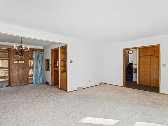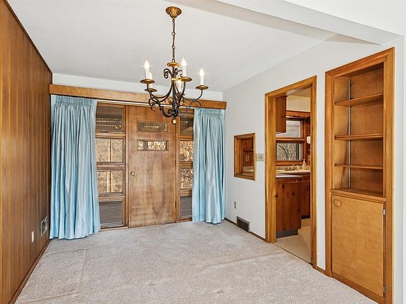 A home full of charm, preserved details, and a rare connection to nature awaits its next steward. Set on a serene 0.39-acre lot, this property offers tranquil wooded ravine views and backs up to 13.85 acres of preserved land, locally known as The Shimek Ravine. Inside, the 1950s character shines: the living room features a wood-burning fireplace with a striking floor-to-ceiling stone surround and expansive western-facing windows that usher in warm afternoon light. A pass-through connects the dining area to the quintessential mid-century kitchen, complete with knotty pine cabinets, retro countertops, and authentic wood paneling. Step out to the large screened back porch—accessible from both the kitchen and dining areas—to take in wooded views just moments from Downtown Iowa City. Upstairs, three bedrooms offer flexibility, including one with built-in bookshelves, perfect for an office or library. The full bath pays homage to its era with pink tile, vintage vanity lighting, and original countertops. Downstairs, a cozy family room, oversized laundry room off the garage, and unfinished spaces hint at this home's potential. This home is held by an estate and is being sold in as-is condition.