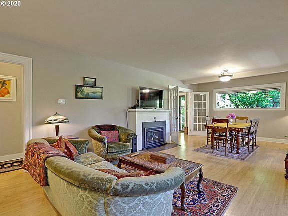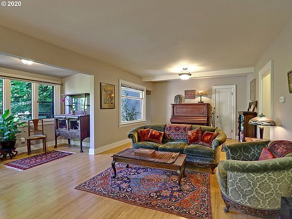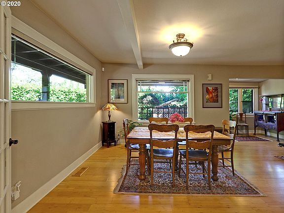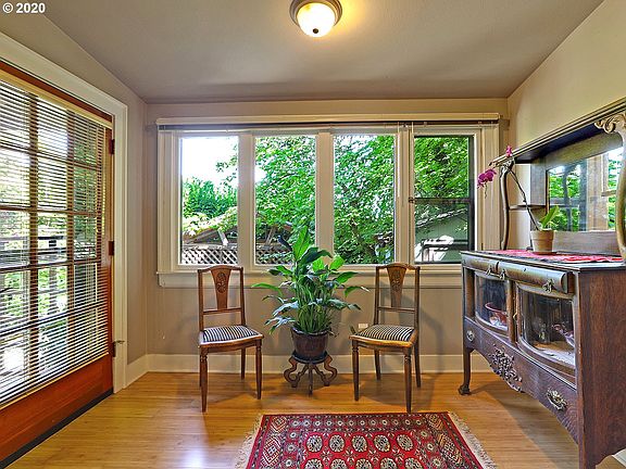 A truly special property & setting nestled at the base of the SW Hills. Character abounds from the covered front porch, warm bamboo floors, gas fireplace & large picture windows w/greenery views. Light filled kitchen w/classic white cabinets & black granite counters. Upper level master suite w/wall of windows. Lower level family room & full bath perfect for guests or hobbies. Enchanting outdoor patios & gardens all in a peaceful, treed setting just blocks to downtown. [Home Energy Score = 3. HES Report at https://rpt.greenbuildingregistry.com/hes/OR10186445]