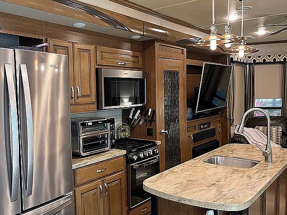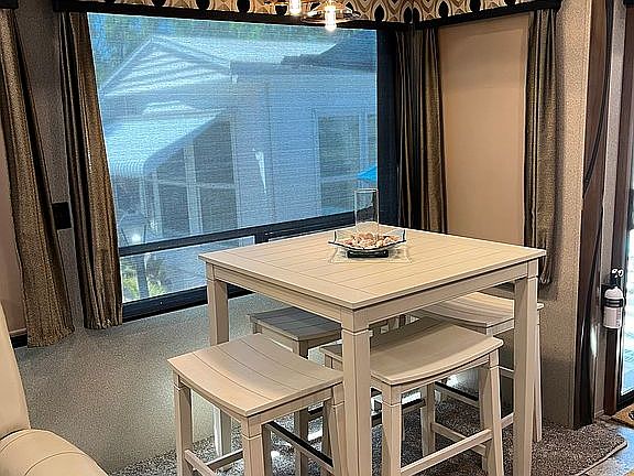 Lot 116 overlooking beautiful park with Spanish moss draped Oak Trees and palms. View surrounding pool, playground, clubhouse, pickleball & tennis courts, horseshoe courts and shuffleboard courts. Year round living. Lot is being sold with 2018 Cottage by Cedar Creek Forest River Destination RV. Forty foot with three slides. One queen bed in bedroom with TV and lots of storage. One bathroom with spacious shower. Washer dryer hookup for stackable. Modern kitchen with full size refrigerator, island includes dishwasher and double sinks and built in microwave over gas stove. Area with new dining set, and living room with TV, electric fireplace, two new electric recliners and queen size pull out sofa. Awning on spacious patio side for outdoor relaxing, cooking and eating. Room for two cars and a golf cart. Storage shed is included. Park is a co-op. You will be issued a certificate at the time of settlement which entitles you to one vote per property on any large projects that Board of Directors propose. The Board of Directors are also voted in by the owners of each property. HOA INCLUDES: Water, sewage, internet, garbage removal and property taxes.