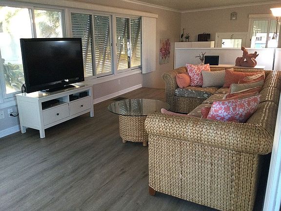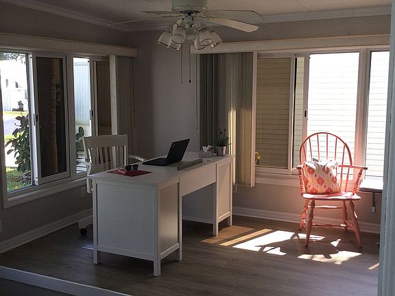 Have you been seeking a winter home in Sarasota, Florida and are discouraged with the sky-high home prices? Sarasota Lakes Resort is the best keep secret in Sarasota County. With 410 privately owned lots and homes this beautifully kept park has a heated pool, pickleball court, horseshoe pits and shuffleboard courts. It has an excellent board of directors and professional management team that has kept the homeowner association dues at an affordable $225 per month which includes water, sewer, cable television, grounds maintenance and property taxes. This Malibu Park Model has a 400 square foot raised, air-conditioned lanai addition. The home had an entire face lift one year ago with new paint and luxury vinyl flooring installed throughout. The kitchen had a partial remodel with fresh paint on the cabinets, an extended length quartz countertop with integrated deep sink, new cabinet hardware and a new range. The bathroom had a partial remodel as well with a new vanity countertop and vessel sink. Other features are a spacious laundry area with full-size washer and dryer and front and rear parking. Outdoors there is a brand new 300 square foot paver patio, gas grill and garden shed. This property is sold fully furnished and turn-key with newly purchased high end home furnishings. Also included is a recently refurbished golf cart for traveling around the park grounds.