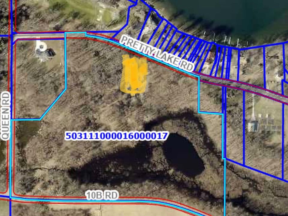 1 Acre TBD Split off larger parcel. Come pick your building site, more land available upon request. Land is across from Pretty Lake. Come build your home with beautiful lake views. This 1 Acre featuresa hill with mature trees and wildlife. Land contract possible