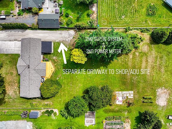 Storybook setting in picturesque West Mount Vernon. Fully remodeled inside and out, this 4-bed, 3-bath home sits on over an acre of flat, usable land—outside the flood plain, so no flood insurance required. Fruit trees! A 2nd septic system and separate power meter are already in place, ready for an ADU, shop, or ultra-convenient RV setup. Deep garage includes a workbench, extra storage closet, and finished bonus room above. There's even a second mini-shop behind the garage. Inside, you'll find an open floor plan with great flow, built-in charm like archways and storage, and tons of cabinet space in the laundry room. Big bay windows frame Mt. Baker views. New deck, recent exterior paint, treehouse, fire pit—couldn't be more move-in ready.
