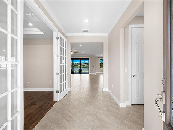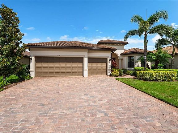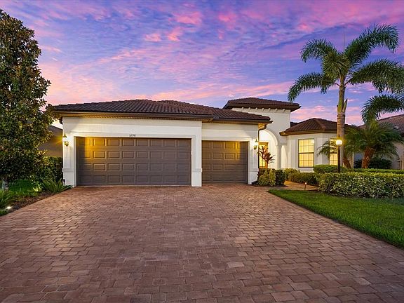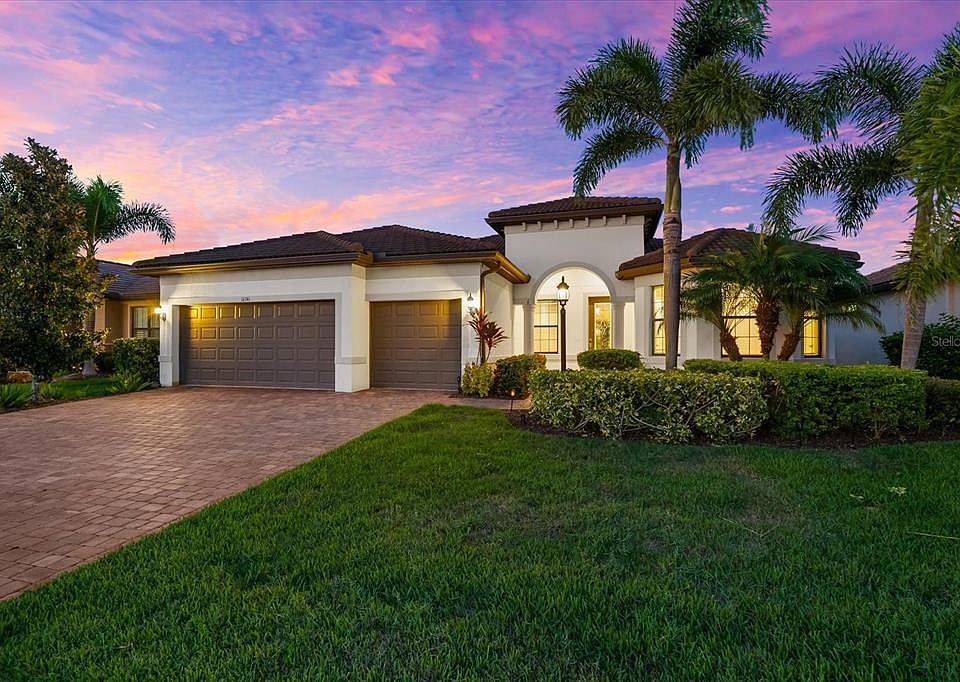 One or more photo(s) has been virtually staged. INTRODUCING THE PERFECT PINNACLE! Prepare to be captivated by this exceptional Estate Series PINNACLE MODEL, offering breathtaking water views and situated in the highly sought-after 55+ Del Webb community of Lakewood Ranch—the nation’s #1 multi-generational expert-planned development. This exquisite residence delivers the ultimate in luxurious Florida living, blending timeless elegance with modern upgrades and everyday functionality. With 3 bedrooms, a versatile den, and a spacious open layout, this home is ideal for both entertaining and daily comfort. Designer touches are found throughout, including crown molding, 5 ¼ baseboards, tray ceiling in the owner’s suite, gorgeous coffered ceiling in the den, designer fans, upgraded lighting fixtures, and hurricane impact glass for peace of mind. At the heart of the home, the gourmet kitchen inspires culinary creativity, featuring a massive island with seating for four, modern pendant lighting, 42” solid wood cabinetry, elegant quartz countertops, stylish backsplash, gas cooktop with upgraded hood, generous storage and prep space, and a custom pantry with built-ins. The home is finished with hard surface flooring throughout that includes a mix of light ceramic tile in the main living areas and rich wood plank flooring in the bedrooms and den, creating a yet warm ambiance. For seamless entertaining, open the zero- corner sliding doors to the extended, covered lanai where you will find ample space for dining, lounging, and tranquil water views—the perfect backdrop for Florida evenings. The expansive owner’s suite offers room for a cozy sitting area and a spa-inspired ensuite with dual vanities, large walk-in shower with a grab bar for safety, and an oversized custom walk-in closet with built-ins and abundant storage. Two additional guest bedrooms, including one with its own ensuite, custom closet, a versatile den with a coffered ceiling—ideal as a home office, gym, craft room, or library. Additional highlights include a 3-car garage built-in storage cabinets, upgraded laundry room with solid wood cabinetry, utility sink, extended screened lanai for ultimate outdoor living. Act quickly. Don’t miss the chance to call this Pinnacle Model showpiece your own and experience luxury living at its finest. Schedule your private tour today!
