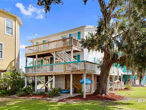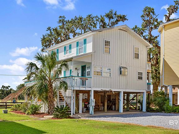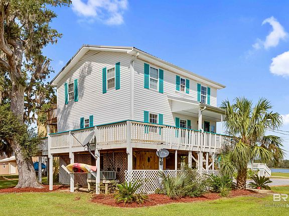 You will fall in love with this coastal cottage with metal roof that has a loft area upstairs and storage on the bottom level. This home has water views of Oyster Bay and Bon Secour River. The property amenities include a beach area by the bay, fishing pier, an assigned boat slip, and a large storage building amenity. You can watch the dolphins play and boats from the nearby Plash Island. The monthly HOA dues are only $50.00. which covers common area insurance and mowing of lots. If you are looking for a primary home, second home or rental investment property, this could be yours. THIS HOME IS BUILT ON A CONDOMINIUM LOT THE SUBDIVISION IS DIVIDED INTO LOTS UNDER THE CONDOMINIUM LAWS.
