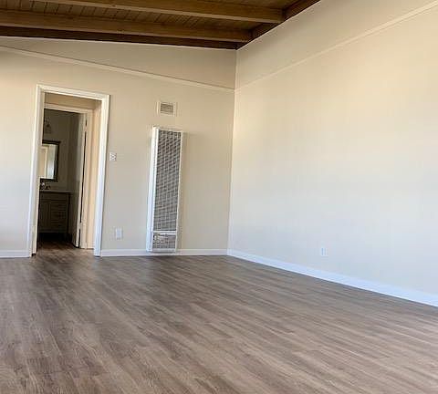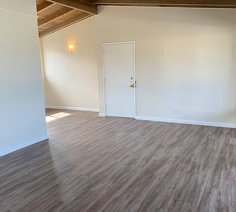 Large 1 BR 1 bath with vaulted wood ceilings. Newly refurbished end unit -- very private. Very good lighting, large private balcony, large 1-car enclosed garage. washer/dryer hookups. Owner pays water and trash. Tenant pays gas, electric, cable.