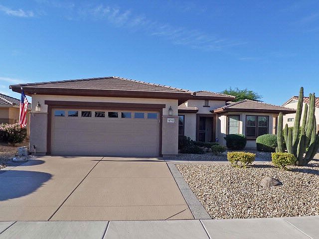 MUST SEE INCREDIBLE UPGRADES throughout, with 18-inch diagonal-set tile with color trim accents. Luxury bath w/soaking tub & luxury kitchen has Corian counters & backsplash w/Raised-panel Maple cabinets. The expanded Breakfast Room is an entertainers delight, featuring a wine bar with adjustable track lighting. Master Bdrm with Bay Window sitting area and a Luxurious Master Bathroom with glass block accents, designer mirrors, rain glass shower & classy closet. 4-ft garage extension with built-in cabinets, workbench, epoxy floor & driveway. Cool deck walkway & driveway trim. 500-sq ft aggregate stone terrace with Pergola cover and sun shade screens. Entertainers delight w/built-in BBQ and refrigerator. Ceiling fans, soft water, 50G hot water tank, programmable thermostat & R/O. Dual skylights w/adjustable shade in kitchen. Sola-tube in hallway for extra daylight. Double privacy doors lead to your built-in office, completely furnished. Laundry room sink & cabinets. W/D included w/gas hookup available. Security lights front and rear, security front door. Alarm system, with each moveable window and door hard wire secured for peace-of-mind. Freshly painted exterior trim. Gorgeous, LOW-CARE desert landscaping front with rear timed irrigation system & built-in timer lighting. Recently added additional attic insulation. Hurry to see this beautiful, below-market priced home!