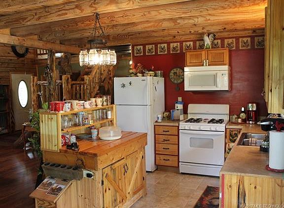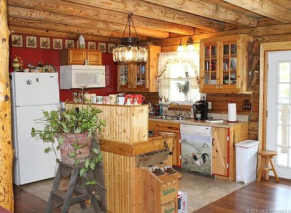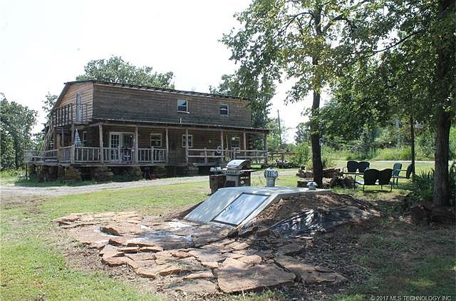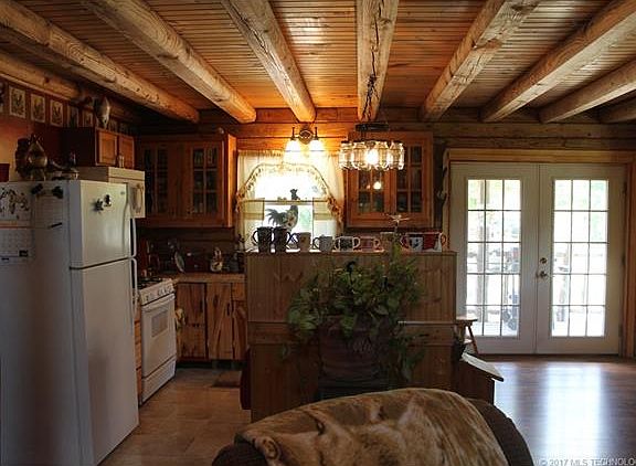 Beautiful log cabin home nestled back off the road. Large oversized open floor plan, wrap-around cov porch. Move-in ready. 4.5 beautiful acres with stunning winter views of Ft Gibson Lake. Just minute to state park, lake, marinas & golf course. Must See!
