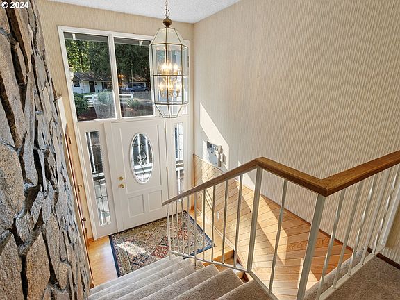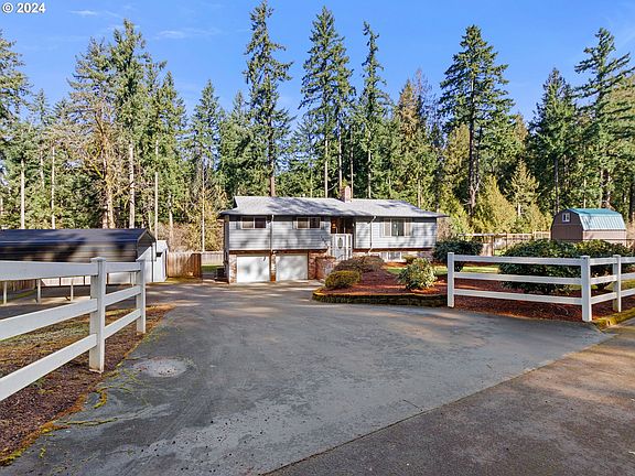 Meticulously maintained 2194 tsf home in a wonderful rural neighborhood nestled between Oregon City & Redland. The very large living room has a rock fireplace that adorns the space with an insert to help warm you on those chilly days. This home has 3, yes 3 full bathrooms throughout and a large laundry room downstairs. Lower level would be a great and an easy place to add a kitchenette & 2nd living...no stairs!! Fantastic Mt Hood & territorial views to the east, surrounded by towering fir trees & 'rhodies' full of blooms in the spring to summer. BIG lot over 15,000sf with plenty of room for a shop! UPDATES: new double pane windows 2014-2015, new PEX repipe 2017, new roof 2014-2015. HVAC has an electronic air cleaner. Double car garage and an additional aluminum carport perfect to protect your RV or other. Covered deck allows you to enjoy the outdoors year round. Outback is a large concrete sport court for your outdoor activities.