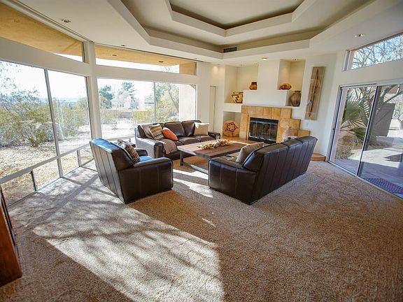 SPECTACULAR SOUTHWEST ESTATE Magnificent 12.4 acre estate high above the valley floor capturing majestic views of mountains, sunsets and city lights. Award winning architect created a masterpiece using floor-to-ceiling glass throughout 3427 sq ft of living comfort. 50'x 40' heat-a/c custom shop with 14 ft ceilings for cars, RV's, boats & more added plus a separate workshop w/220 electric so under-roof parking 15 spaces. Outdoor decor, expansive concrete driveways/walkways & perimeter stucco wall complete the exterior grounds. Inside the main gate is an impressive courtyard with waterfall directing you to a large entry door. Off the entry is a sunken living room with fireplace & vaulted ceiling enhancing viewing pleasure. The gourmet kitchen contains granite counters custom cabinets, center island, Wolf 5-burner cooktop, subzero refrigerator and pantry. The spacious dining room with S/W porcelain pavers & sliding glass doors connects numerous patios.The east wing offers bath servicing the living areas, 2 guest bedrooms & well appointed full guest bath. A hallway lined with full-length storage closets leads to the main 3+ car garage. Security alarm & energy-saving solar systems also present. South wing has handsome family room with fireplace, tons of built-ins & large corner windows. Just ahead is an impressive master suite with classic S/W fireplace, spacious sleeping quarters & lavish bath area. Superbly designed & unmatched views, it's all here. SEE LINK FOR VIRTUAL TOUR!!