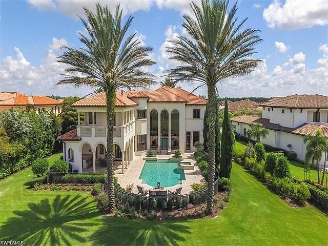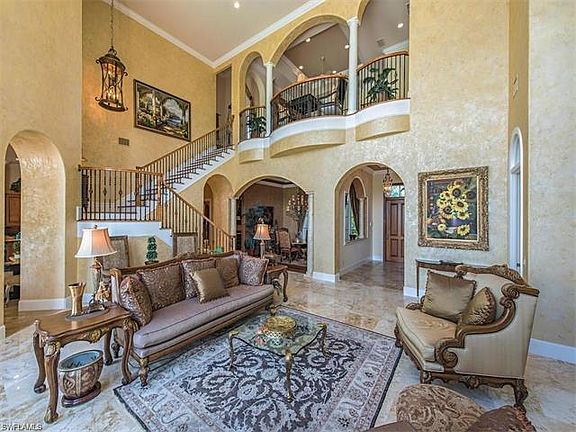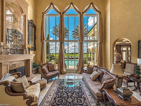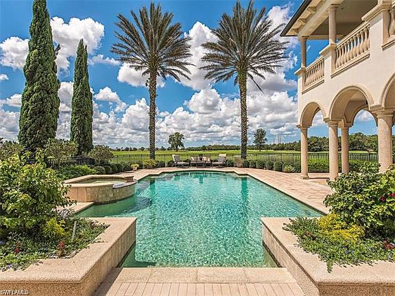 Welcome to 16748 Prato Way, a unique 2-story 5-BR plus den/7-BA estate home encompassing 6,356 sq. ft. and located in the subdivision of Prato Grand Estates at Talis Park Golf Community in North Naples, FL...a Greg Norman/Peter Dye course, rated as one of the top 25 in the US. With stunning 180 degree golf and lake views, this home is offered furnished in a style reminiscent of Old World Italian charm. Vast ceilings and oversized double-hung windows span far and wide, inviting the natural light and enhance the architectural details...archways, crystal chandeliers, tray ceilings, marble tile, columns and hardwood floors. A spectacular Italian marble foyer leads to a whimsical staircase, winding its way to the master suite. Walk-in closets, fireplaces, double-sink vanities, spa-tubs and showers are all assets of this exquisite home. A state-of-the art Chef's kitchen includes granite countertops, commercial-rated appliances and dark-oak cabinetry. For your pleasure, a billiards and theater room and a spectacular outdoor lap-pool and spa.