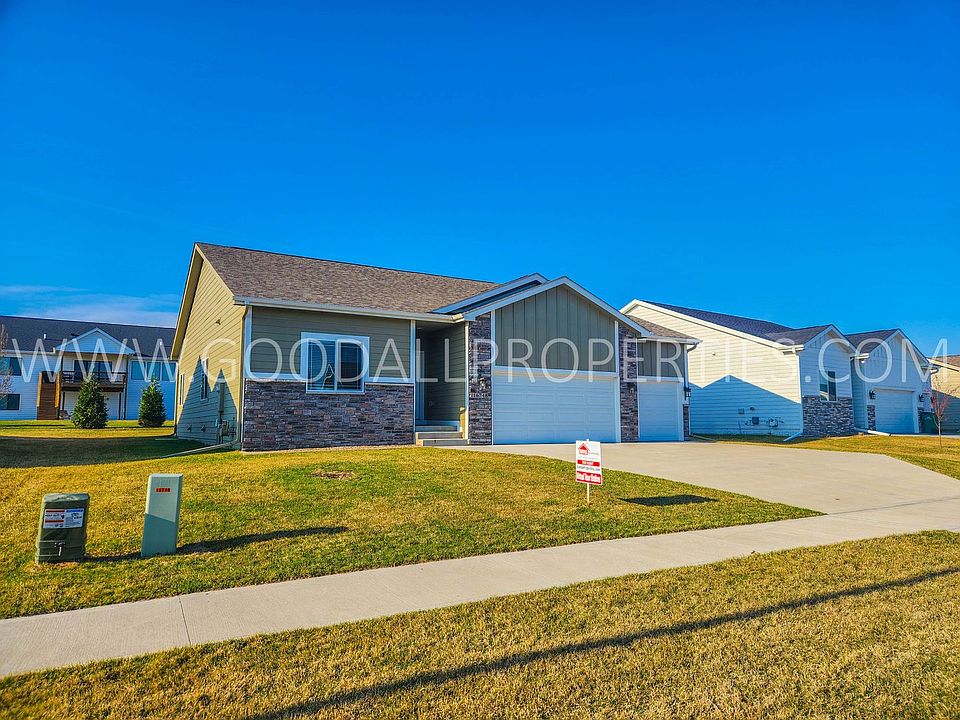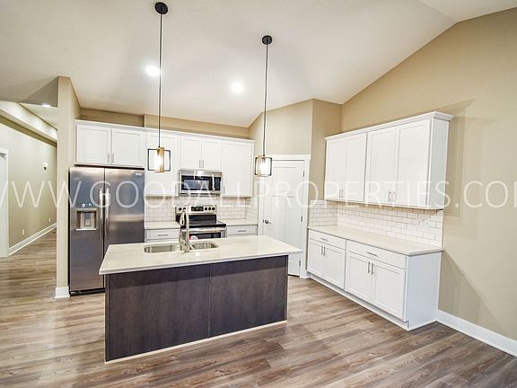 Beautiful 4-bedroom ranch home with a 3-car garage and over 2,500 sq. ft. of finished space. This residence features an open floor plan with 9-foot ceilings. On the main floor, you will find 3 bedrooms, 1 bathrooms, and a laundry room. The living room and kitchen boast large windows with southern exposure, allowing for plenty of natural light. The hallway and kitchen are adorned with luxury vinyl flooring, while the kitchen includes Quartz countertops, a tiled backsplash, a pantry, and brushed nickel hardware and faucets. The master bedroom features a tray ceiling, a ceiling fan, and a bathroom equipped with dual vanities, Quartz counters, a shower, a linen closet, and a walk-in closet. The lower level offers a spacious family room, a full bathroom, and another large bedroom. Additionally, there is a substantial unfinished storage area in the basement. Rent a Brand New house with your choice of the floor plan and options. Contact us to build your custom rental home. Pick out your flooring, cabinets, countertops, and so much more. A 2-year lease and a 2-month deposit are required. Available in Waukee, Altoona, and De Soto. Goodall Properties, LLC 3233 Ashworth Rd Waukee, IA 50263 Licensed in Iowa