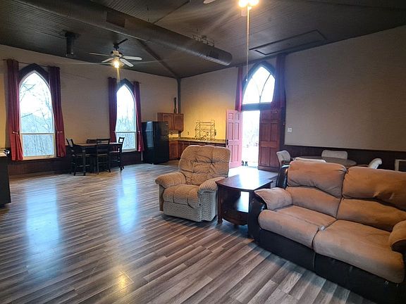 Historic Home, Lovingly Updated. This unique 2BR,1BA home is a lovingly converted 19th century country church. Sensitive changes and renovations have made this little treasure a cozy home while highlighting the beautiful, historic charm of the original building. What was once the nave is now an open plan living/kitchen/dining area with 11+ foot ceilings. The tall, gothic eyebrow windows bathe the main space in light. The square footage has been wisely used to provide a generous bathroom with separate shower and deep soaking tub, as well as a bonus room that would make a wonderful den, office, or playroom. Enjoy the wooded surroundings beyond the fully-fenced yard from the comfort of the screened-in porch or adjoining deck. Established garden beds and a sturdy chicken coop across the flat of the yard will have you living the sweet country life, while only 15 minutes from Athens. This historic building's cottage charm will make a comfortable full-time home, vacation rental, or personal getaway. A must see property with unique features and appeal.