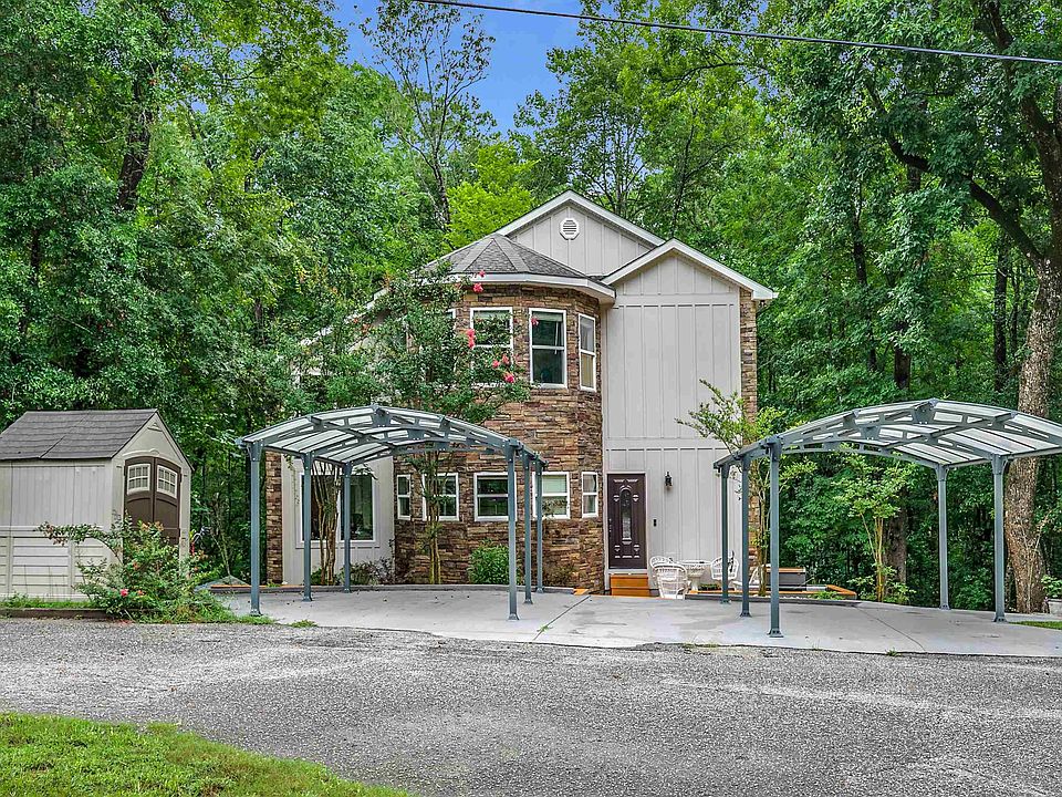 Ever want to live in the middle of nowhere but want the convenience of living right in town? Well than this is the home for you! This amazing home is at the end of a private street surrounded by mother nature, yet walking distance to Little River Historical Waterfront. Want to go the beach? Only a 10 minute drive to Cherry Grove. This is a home you will not find anywhere else. Open floor plans on main and lower level, with 2 bedrooms and 2 bathrooms on upper level. Main level was renovated in 2019, lower level (basement/3 bedroom/game area) in 2017, and the exterior (siding, patios, rock work) in 2020-2021. Enjoy your morning coffee on the back balcony over looking the backyard and creek, you may even see deer, rabbits, a variety of birds and more. In the evenings relax on front patio listening to the waterfall in the rock pond. This home boasts Brizilian Cherry wood floors, black slate tile, and viny planking flooring. Samsung black stainless steel appliances , custom showers. Come and see this unique house for yourself.